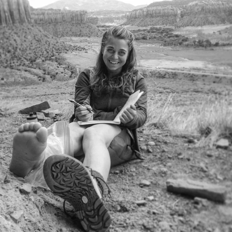 Erin sits on the the traditional territory of the Navajo, Hopi, Zuni, Ute Mountain Ute, & Uintah Ouray Ute tribes, a few years ago nursing her freshly sprained ankle after falling twenty feet onto a scree pile. She’s happy to be alive!